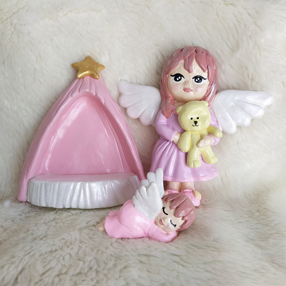 مجسمه دکوری مدل فرشته نگهبان کد MTT-161 مجموعه ۳ عددی شامل یک عدد فرشته نگهبان (۲۰ سانت در ۲۰ سانت)، یک عدد چادر (۱۷ سانت در ۱۷ سانت) و یک نوزاد (۱۰ سانت در ۶ سانت) است. این ست زیبا تزیین زیبایی برای اتاق کودک شماست. جنس مجسمهها از پودر سنگ بوده و قابل شستشو میباشد.